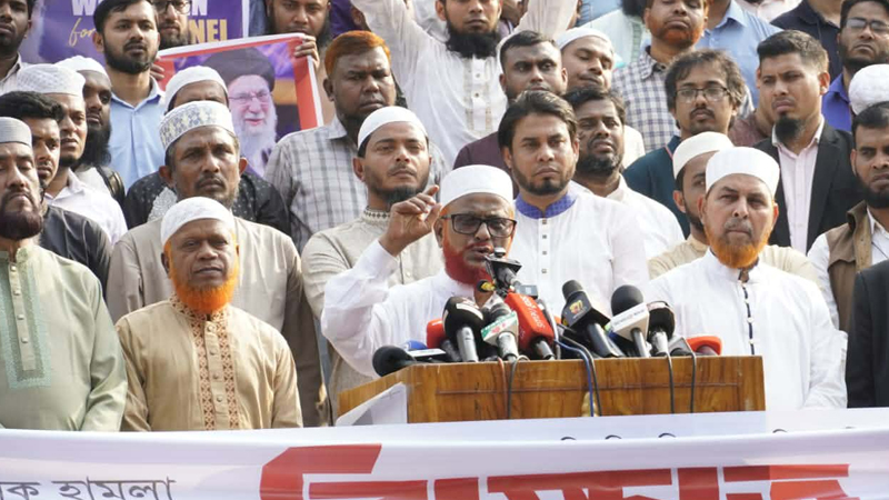 অন্যদের মধ্যে বিশেষ অতিথিদের বক্তব্যে জামায়াতের সহকারী সেক্রেটারি জেনারেল মাওলানা রফিকুল ইসলাম খান বলেন, ইরানে হামলার পেছনে কেবল ইসরায়েল নয়, আরও শক্তিধর রাষ্ট্রের সংশ্লিষ্টতা রয়েছে বলে বিশ্ববাসীর ধারণা। এ ধরনের ঘটনা বিশ্বব্যাপী অস্থিরতা বাড়াতে পারে। তাই ছোট-বড় সব রাষ্ট্রের ক্ষেত্রে আন্তর্জাতিক আইন সমানভাবে প্রযোজ্য করার আহ্বান জানান তিনি।